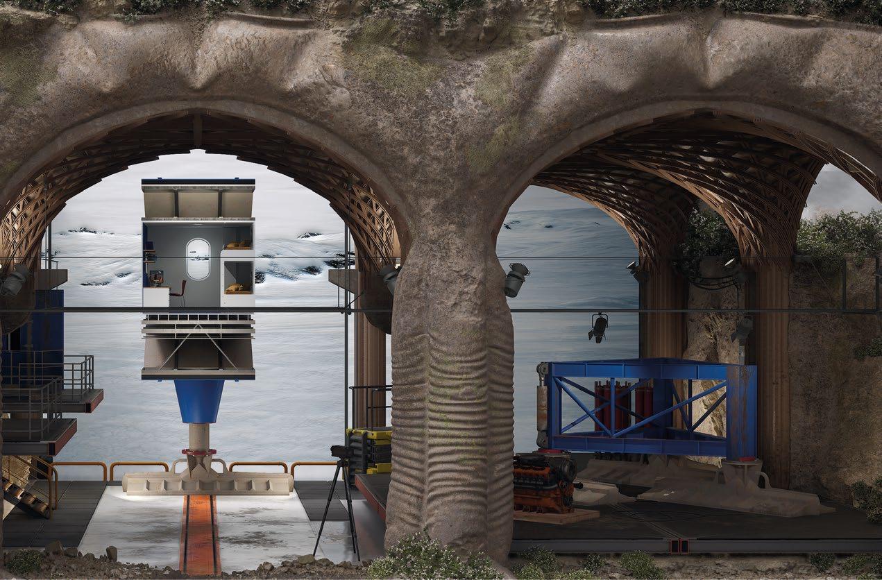 24.15–24.18 Mārtiņš Starks, Y5 ‘An Ark of Us’. The project is an inquiry into architectural worldbuilding as a tool for weaving between local and global narratives. It traces the birth and decay of a fictional cosmic dream, emerging from Latvia on the fringes of the Western world. Navigating themes of Soviet heritage and post-Communist optimism, the Baltic Space Laboratory unfolds across both its Earth and lunar sites. Steeped in local folklore, the imagined moon base inscribes traces of its ecological and cultural origins into the barren landscape. The project envisions six lunar habitats, each centred around a totem symbolising the Earth’s essence, blending practical functions with spiritual elements. The mission focuses on preservation, reflecting the human drive for memorialisation and storytelling.
