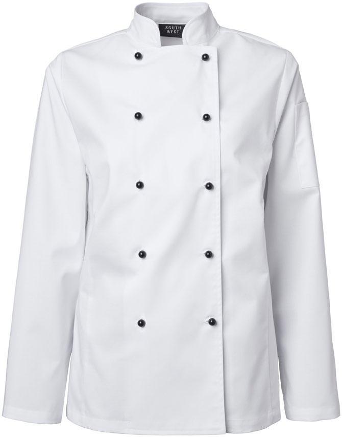 Elton Chef’s Coat on klassinen miesten kokkitakki kaksoisnapituksella. Kokkitakissa on väljä istuvuus ja pitkät hihat, joissa on yksinkertaiset hihansuut halkiolla, jotka on helppo kääriä. Takissa on kynätasku vasemmassa hihassa ja lenkki niskassa. Napit eivät sisälly pakkaukseen, mutta ne voi ostaa erikseen 10 kpl pakkauksessa.