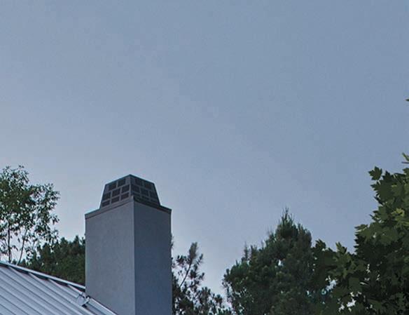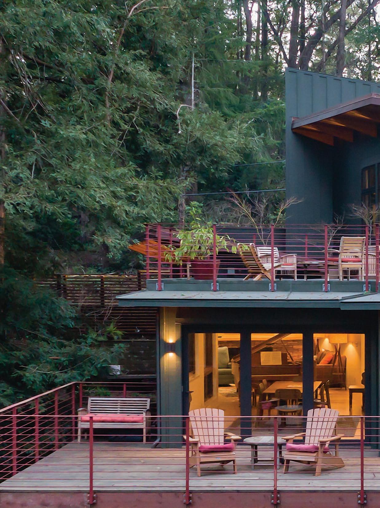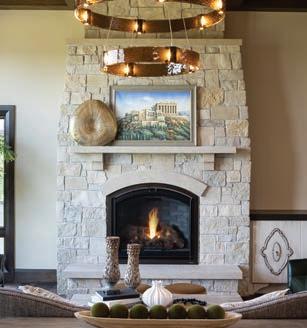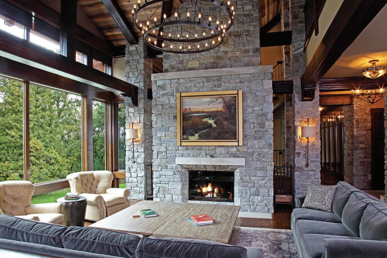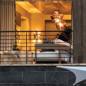 • Featuring cold-rolled steel, the floor-toceiling fireplace is the centerpiece of the living room, which, with its open layout and vaulted ceilings, is the perfect place for hosting parties or family movie nights.