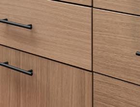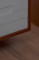• The white oak box beams in the kitchen and dining room bring warmth, character, and depth to the house, seamlessly sewing together the vintage home with the modern remodel.