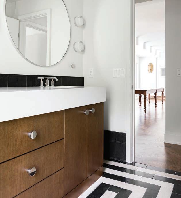 A 1960s rambler was opened and energized with a reimagined floor plan. After removing interior walls and enlarging the kitchen, oversized floor-to-ceiling windows were added to merge indoors and outdoors. The foyer was recon gured to create a new mudroom area with custom storage and access to the garage. The home’s midcentury modern aesthetic was elevated with clean lines, graphic shapes, and eye-popping colors for a customized main level with a bright retro feel. See for yourself when Plekkenpol Builders remodels your home, “The Di erence is in the Details.”