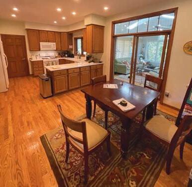 This is where the party starts! Kitchen addition with vaulted ceiling, new windows, and skylights. Custom cabinets with every cooking and storage amenity you can think of. Giant mirrored pantry and party island. Innovative use of mixed materials and lighting. Painted and stained cabinets and cherry wood floors.