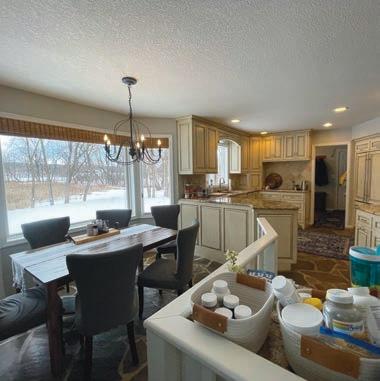 Lake living at its nest! This whole-house remodel on Lake Minnetonka is a must-see. The home was completely remodeled and looks like a new home. KT was opened by removing the wall between KT and FR. Removing the wall at the entry opened sight lines out to the lake. GR has a new floor-to-ceiling replace and distressed wood beams on the ceiling. The KT is now open and bright with white cabinets, Knotty Alder Island, and Cambria waterfall edge countertop. New decking with XL patio doors makes for a great entertaining space. A Phantom Screen o the primary bedroom and o ce allows for breathtaking views of the lake with a place to sit and relax.