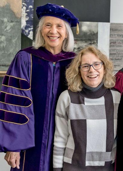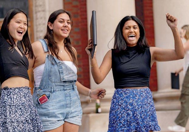 Left below: Maria Francisca Rocha ’24 (left) places her thesis into a binder that’s held open by firstyear friends Inês Reis (center) of Angra do Heroismo, Portugal,and Vlerë Azizi of Gjilan, Kosovo.