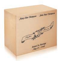 Batesville o ers an array of engraving designs that can transform any urn into a permanent, personal memorial. From intricate patterns to heartfelt messages, our personalization o erings are designed to meet individual needs and desires. You have the freedom to select from our ready-made options or combine several designs to create a truly unique and meaningful tribute. Let us help you create a memorial that will honor your loved one’s memory for generations to come.