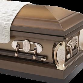This beloved casket features a beautiful dual tone finish and gold tinted hardware. The O77 highlights the exterior color with a coordinating interior.