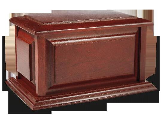 This beautifully crafted wood casket features a rich cherry stain and a hand-rubbed, high-gloss finish that highlights the natural warmth of the wood. Embossed wood swing bars add a refined detail, while the classic wood post corners can be customized with your choice of 4 personalized corners.