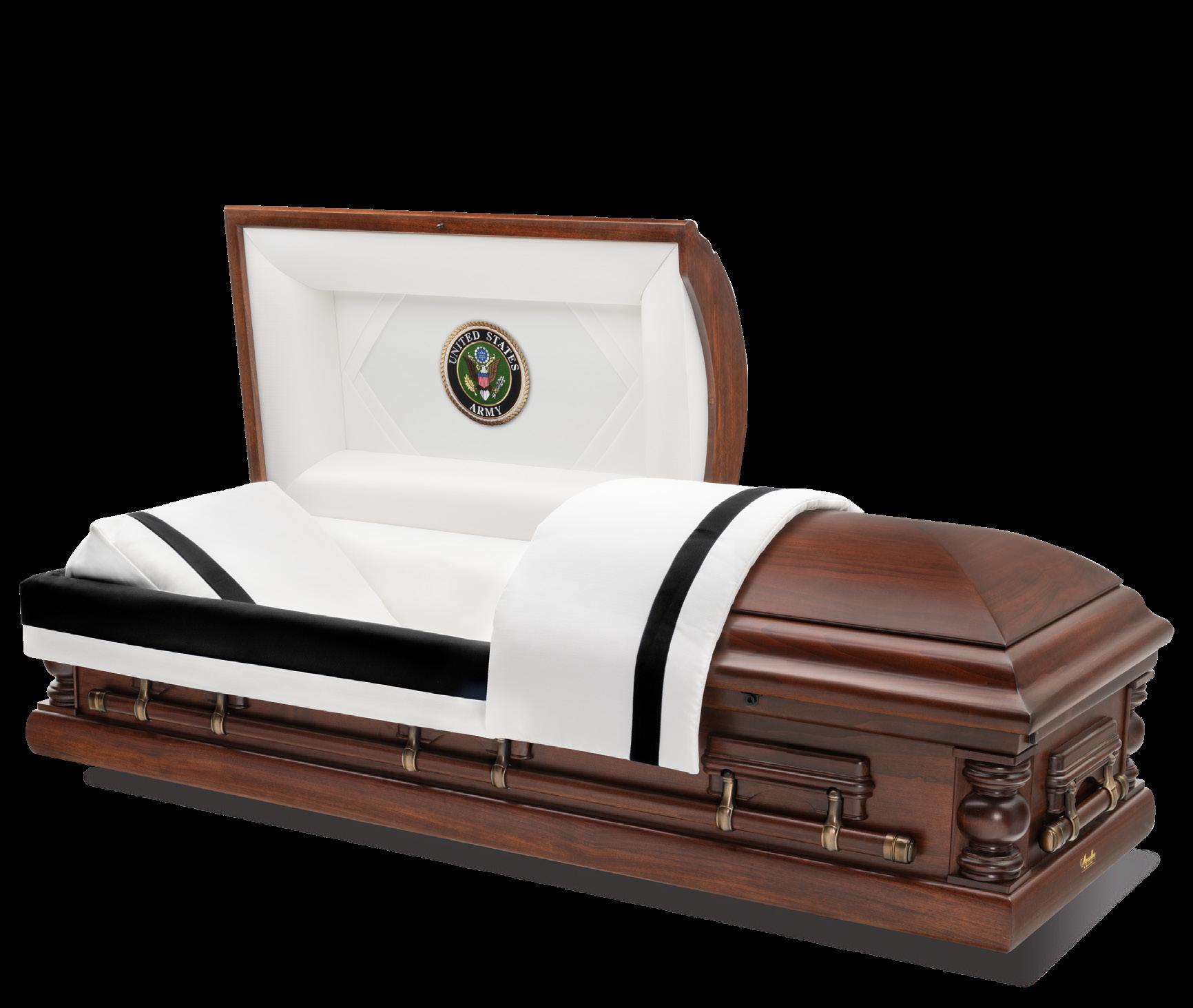 Choose from caskets with either Blue or Black accent fabrics. Honor any branch by adding military-themed personalization to the corners or cap panel. Also includes reversible ivory interior.