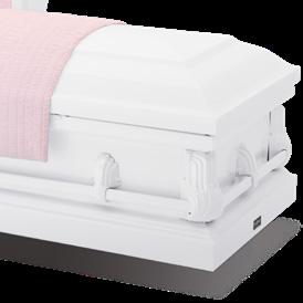 Introducing the industry's first oversized version of the popular Clifton casket— designed to comfortably fit within a standard-sized vault. Includes lace or shirred over overlay, and the ability to add photos and 1 personalization option to the cap panel.