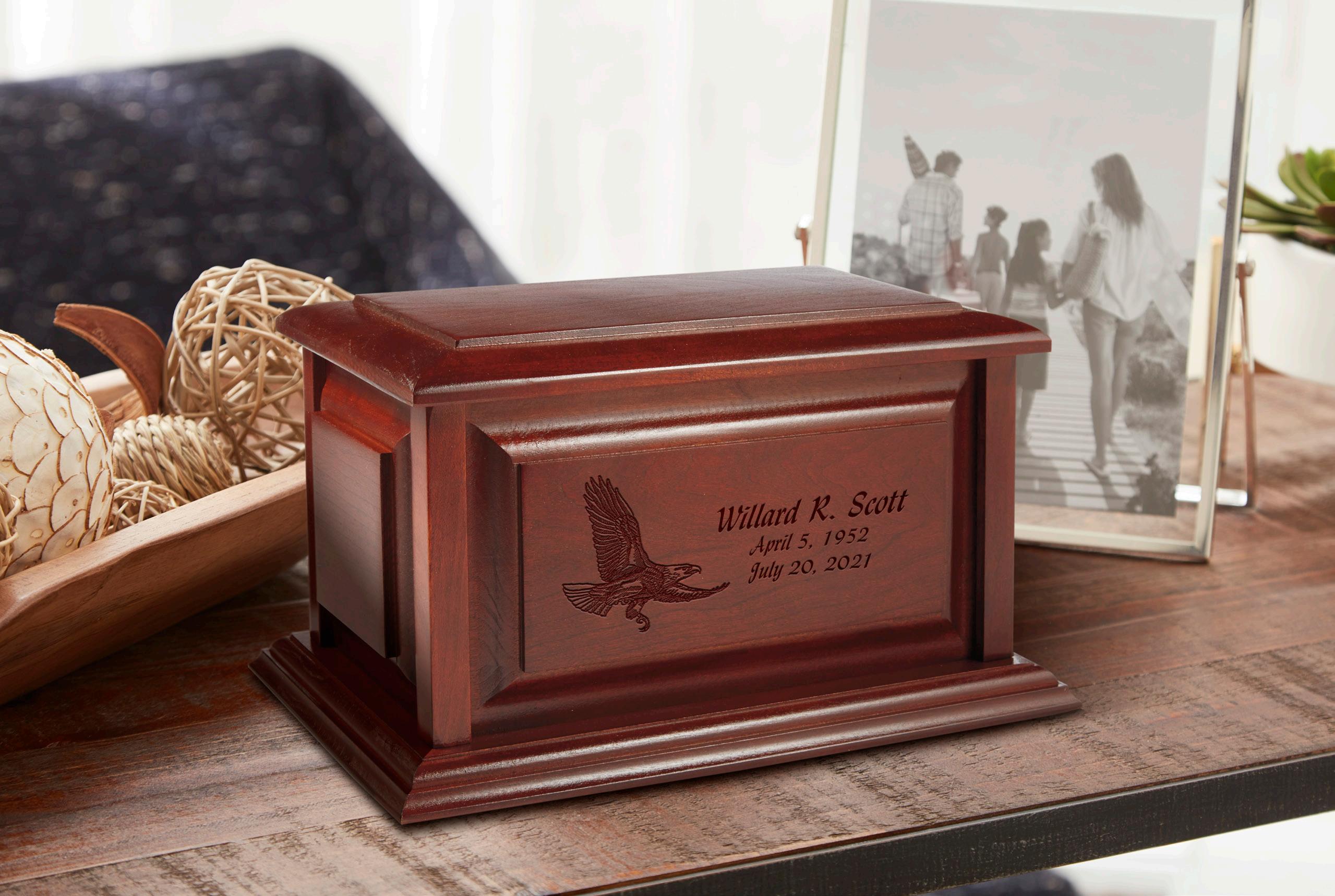 Full-size Rookwood urns can be accompanied by a bronze engraving plate on the base. This plate will allow for name and dates in Times New Roman font only and will only be included if the product is engraved for an additional fee. Family Favorite