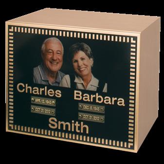 The memorial appliqué provides a unique and timeless way to celebrate the life of someone you love, using a favorite photograph that exemplifies their spirit and personality. Your loved one’s photograph will be engraved on a .25” thick bronze or aluminum sheet in stunning 3-D color relief, sealed with the Trigard Durasheen™ finish and then affixed to the urn of your choice (sold separately). The result is a beautiful, lasting memorial suitable for home or niche placement