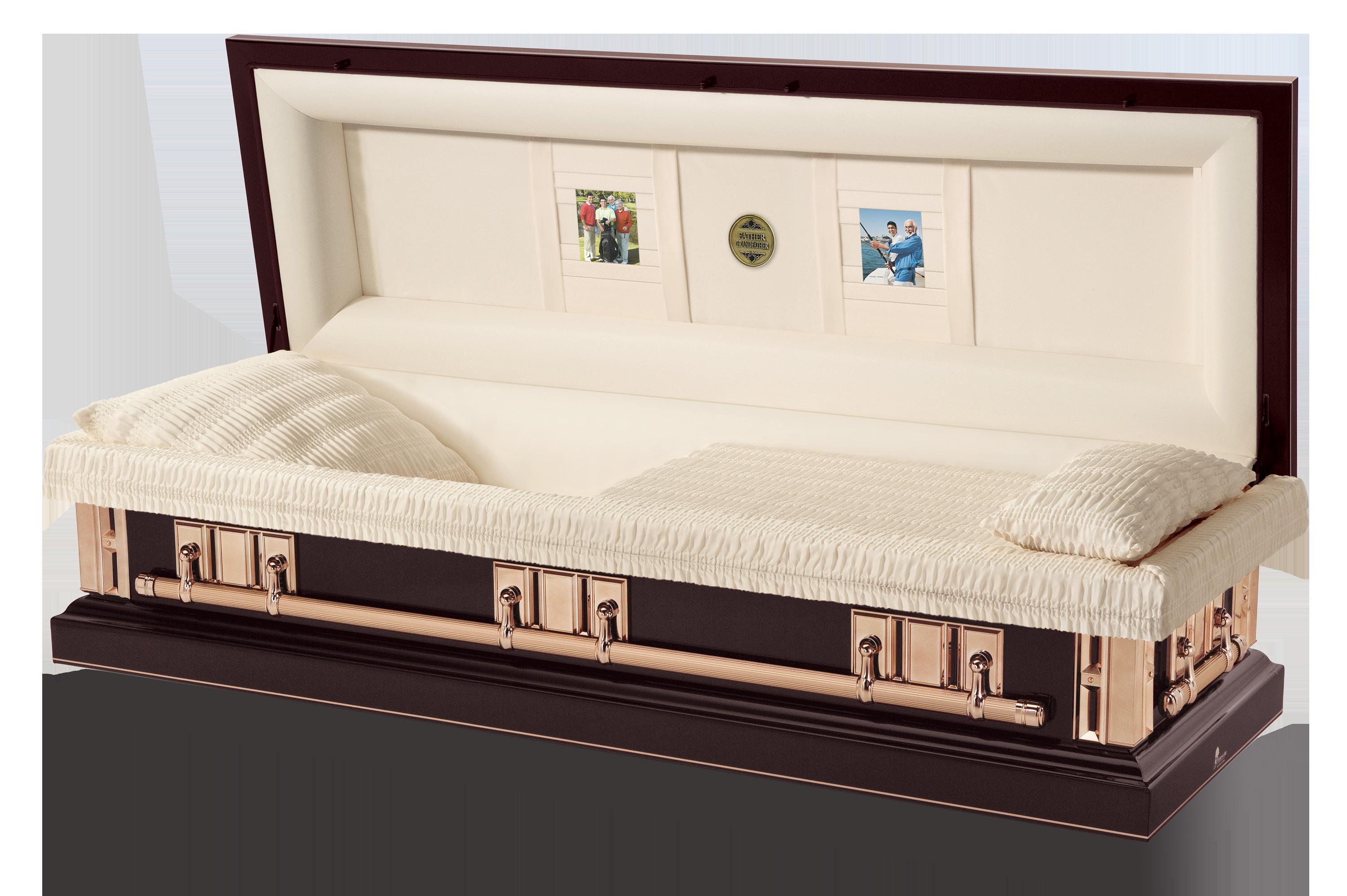 This casket offers a variety of personalized options, featuring a LifeView® panel and one personalization choice for the center of the cap panel. Color options include Merlot & Granite.