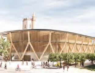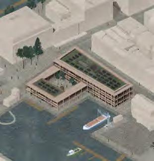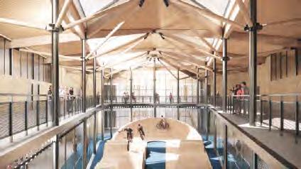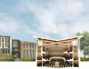 a specific pedagogical function. Collaborative zones, animated by bridges and atria, act as connective spines that foster spontaneous interaction and cross-disciplinary dialogue. The facade expresses a dual agenda: performance and identity. Clad in integrated photovoltaic panels, the skin generates renewable energy while visually anchoring the building as a sustainable and iconic civic presence. Rooted in the local wharf vernacular, the pitched roof form conveys a sense of place while enabling structural efficiency and environmental responsiveness.