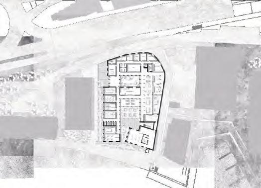 connections to educational spaces. The social building houses quieter programmes including therapy rooms, a café, and a meditation space, offering moments of calm and reflection.