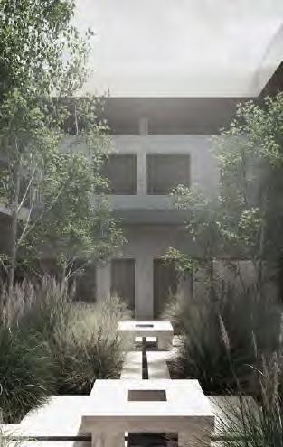 a central courtyard. More than just circulation, this space offers calm transitions, places to pause, and clear orientation throughout. Connection to nature is embedded at every level, with planting, framed views, and outdoor access all supporting the healing process.