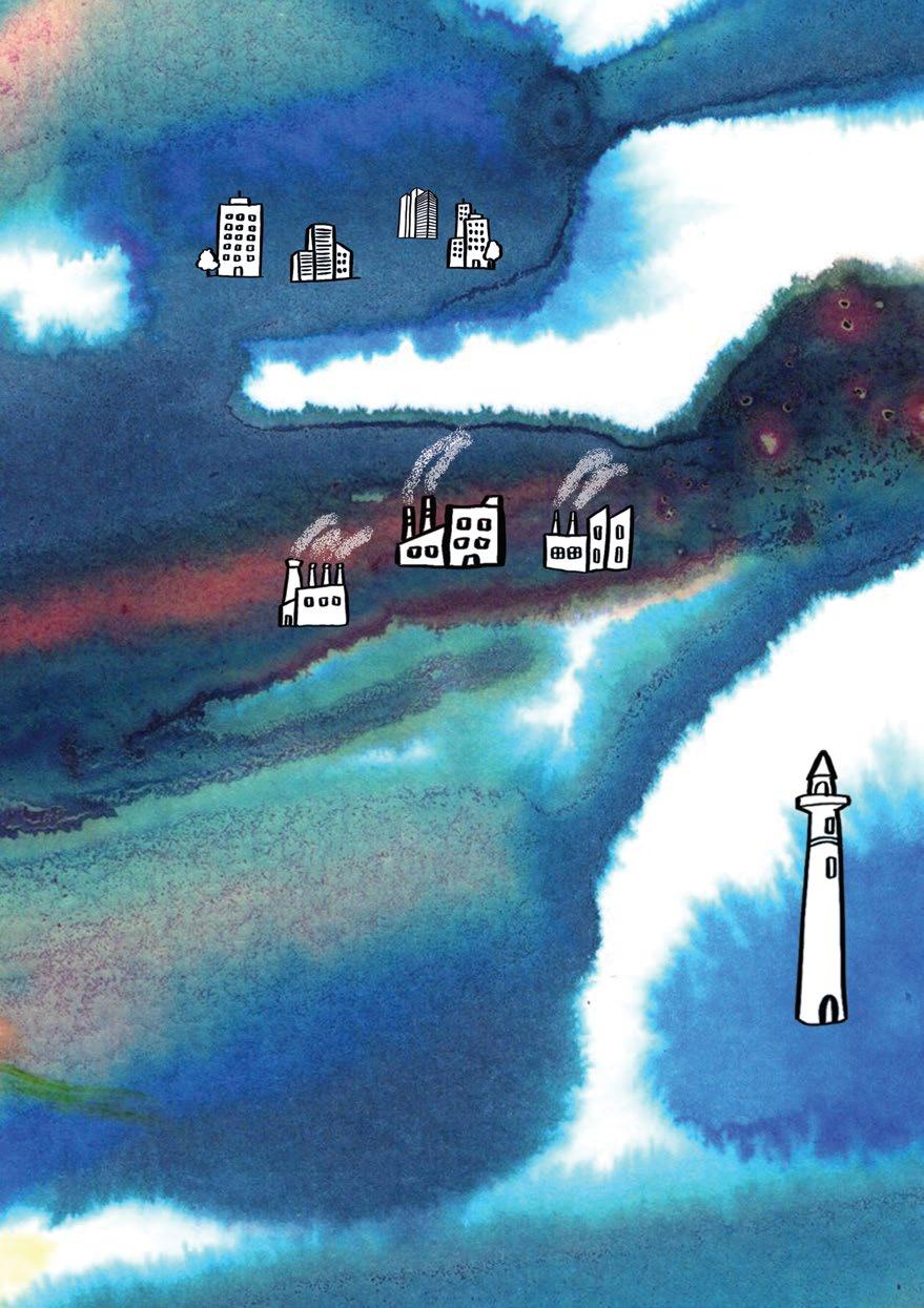 She popped the piece of croissant in her mouth and ran of to the middle of the bridge, dodging horse-drawn carts. There she fung out her arms and spun in the soft, autumnal sunshine. Her plaits, school satchel and white apron few out as her world whipped by, a blur of towering statues, a wide river fowing to the lowlands, and her town on its banks, stufed full of exquisite buildings. Tilting her head back, she saw pigeons crossing a blue sky, but not in a pigeon’s usual raggedy fock. These ones few in formation towards a circular, spotlessly white wall that wrapped up the town like a ribbon. Beyond it lay mountains as pointy and snow-capped as a small child’s drawing.