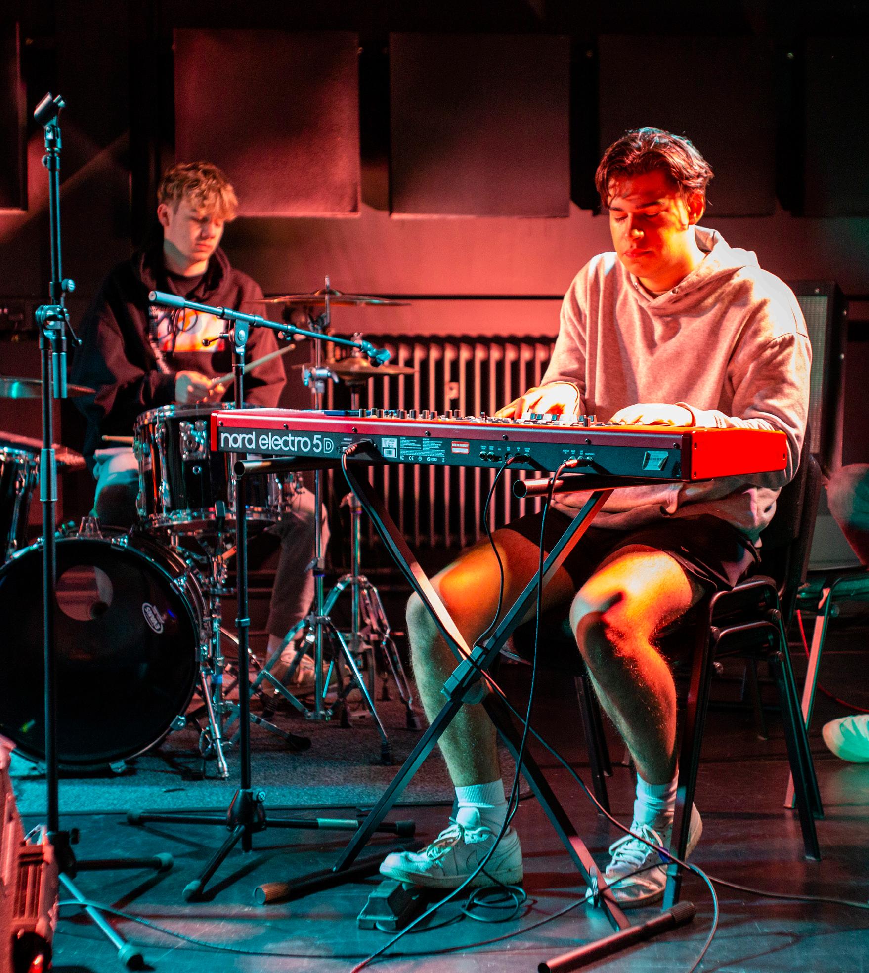 Alongside this practical work, students undertake contextual studies, analysing their own creative outputs and the work of relevant artists. Performance is also central to the Commercial Music experience, and we support the development of strong performance skills, either as a solo artist or as part of a band.