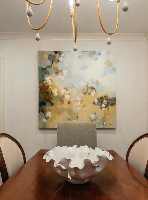 The furniture throughout the home is a collection of old and new pieces, including many items handed down from family and newer pieces collected as a couple, like the head dining room chairs found in Destin and recovered in a sage green fabric and the large Saliha Staib painting hanging in the dining room, which was a gift from McCraney’s paternal grandparents.