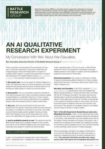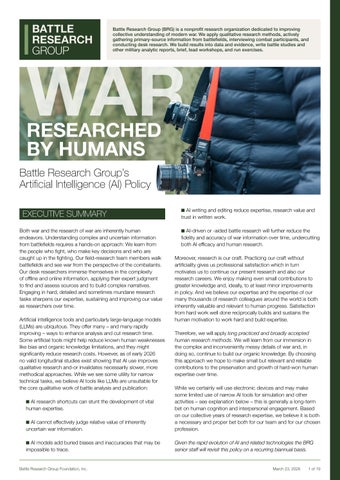 War Researched by Humans: Battle Research Group's Artificial Intelligence Policy