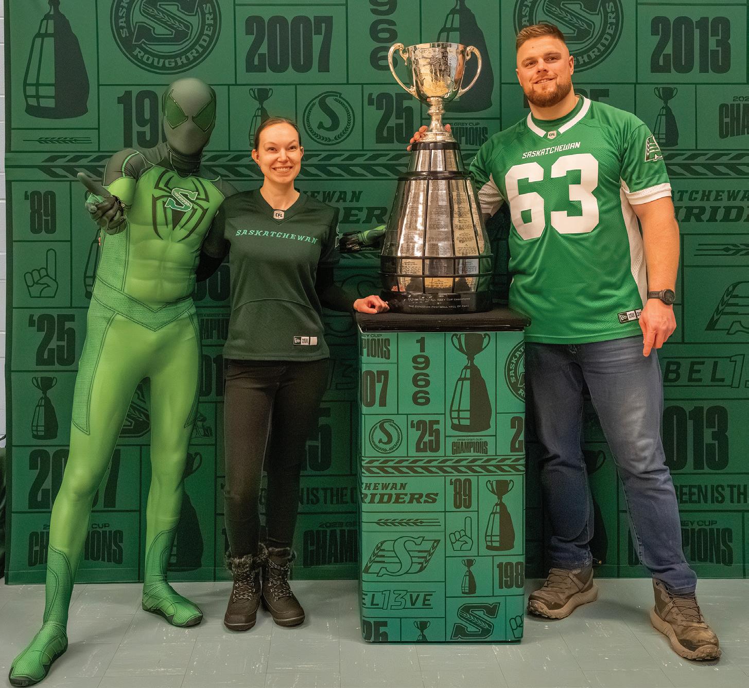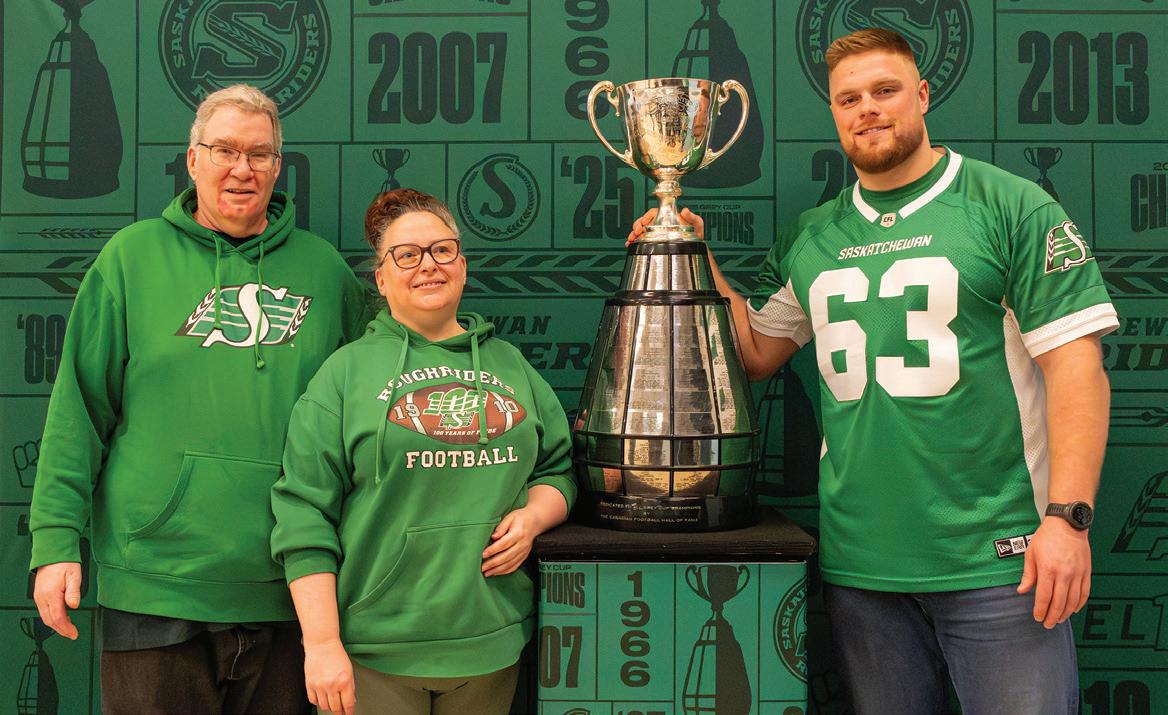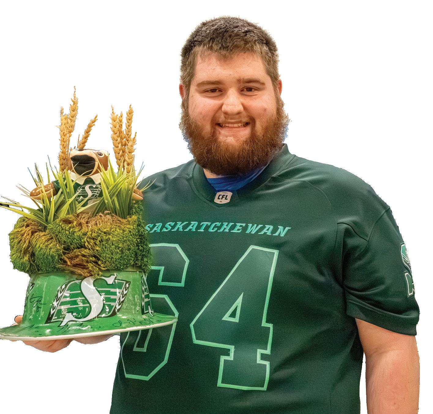 Most attendees wore Rider swag but a few stood out, including Wazzy_q (Brantly Wasmuth), who dressed as Spider-Man, and Carson Meiklejohn, who wore a custom hard hat created by his father in 2003. Meiklejohn said his father decorated the hard hat with moss and placed Gainer the Gopher in the centre to make it look like the mascot was coming out of a gopher hole. He said it always draws attention among Rider fans. Over the years, Meiklejohn and his father have collected autographs from past Grey Cup champions, including Darian Samuel Emilus and Wes Cates. He said he was looking forward to adding Ferland’s signature.