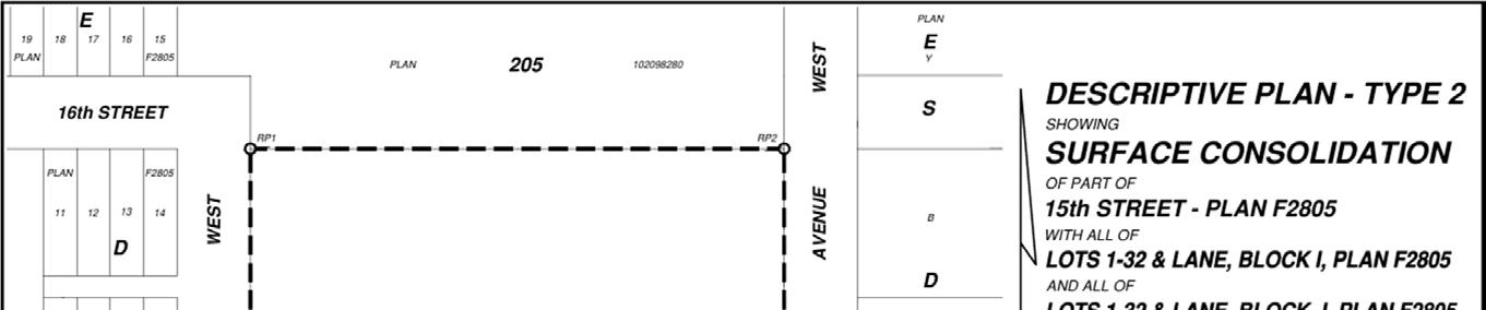 "All that portion of 15th Street and two laneways between 6th Avenue and 7th Avenue as Proposed Subdivision (dashed line) dated February 26, 2026 and signed by MURRAY said Drive is shown and was vested on St/L 11, 12, & 26-Plan F2805".