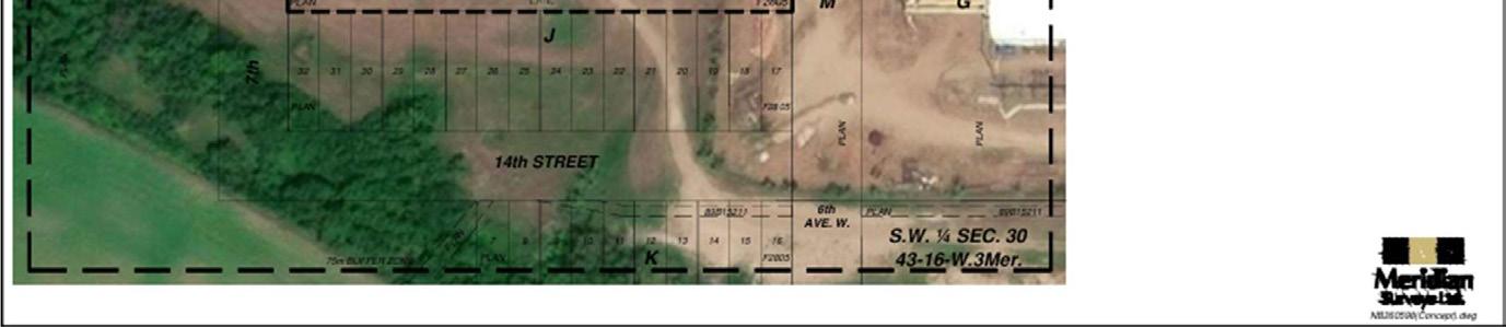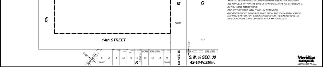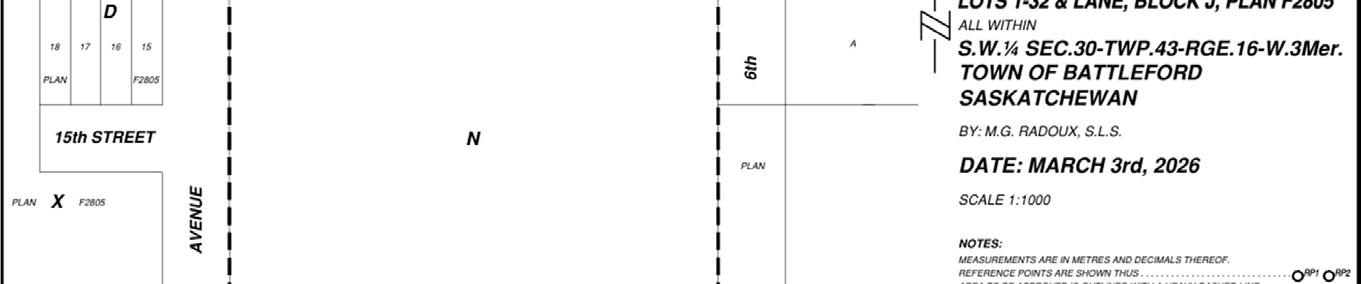 "All that portion of 15th Street and two laneways between 6th Avenue and 7th Avenue as is shown on a Plan of Proposed Subdivision (dashed line) dated February 26, 2026 and signed by MURRAY G. RADOUX, S.L.S as said Drive is shown and was vested on St/L 11, 12, & 26-Plan F2805".