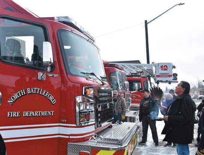 performs a smudging and blessing on the new $761,000 Engine-22 as it joins the North Battleford Fire