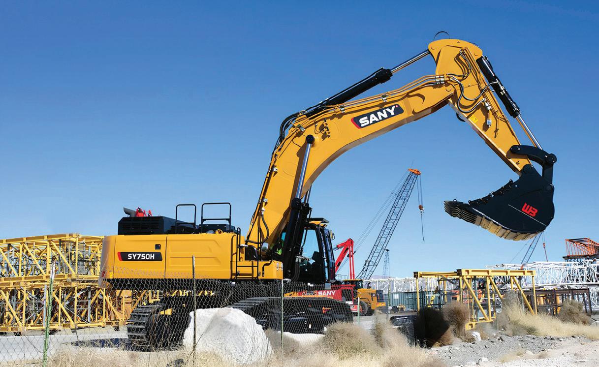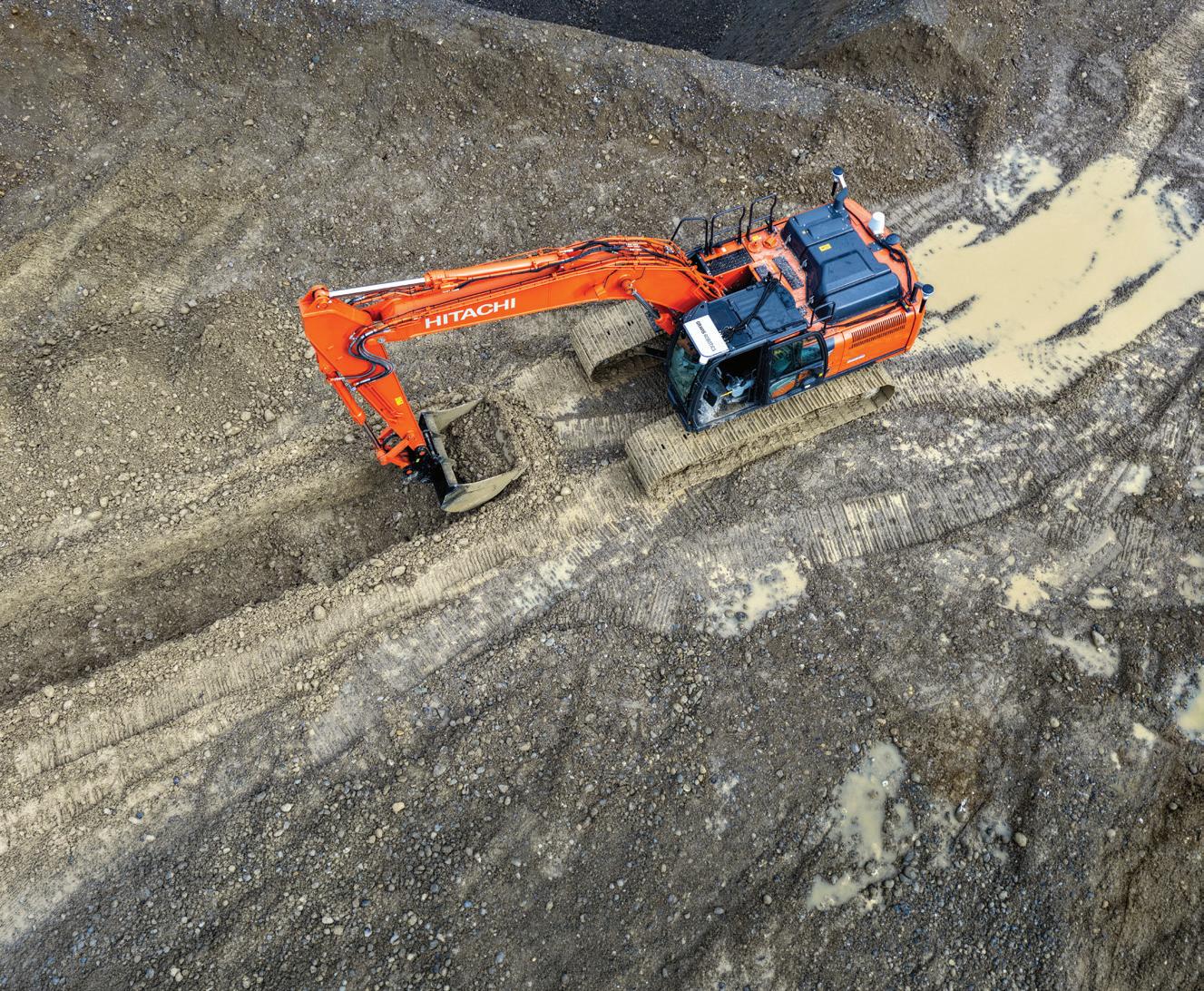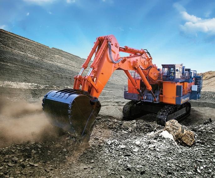 Hitachi’s 558-tonne EX5600-7P ultra-large hydraulic excavator, backhoe specification model, has increased production capacity by 12 percent. To achieve its productivity gains, Hitachi expanded the bucket capacity from 34 cubic metres to 37.5 cubic metres and increased the power of the engine and hydraulic pump to improve the vehicle’s operating speed. Hitachi has also improved the durability of the boom, arm, and upper body frame compared to the EX5600-7. The use of highstrength steel castings has been expanded in the boom, and structures and welding methods for the arm and upper body frame have been improved. These updates are intended to reduce the need to overhaul the machine. The excavator is compatible with LANDCROS Connect Insight, a solution that retrieves and analyzes operational data to increase mining operation efficiency.