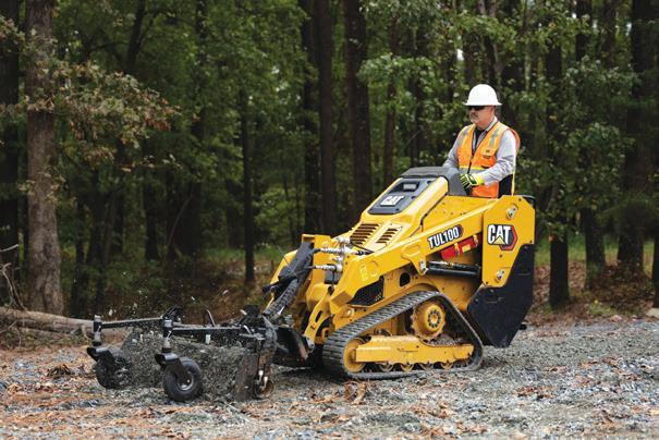 Caterpillar enters the compact utility loader segment with the TUL100. Designed for work in confined spaces, the machine has a rated operating capacity of 1,000 pounds (454 kg) and is available with 36-inch (914-mm) or 42-inch (1,067-mm) track widths. Powered by a 24-hp Cat C1.1 turbodiesel engine, it features a hydraulic system intended to support a range of attachments, including augers, trenchers, and forks. The TUL100 has an operating weight of approximately 3,600 pounds (1,633 kg) and a maximum lift height of 7 feet (2.1 m). Optional VisionLink integration supports fleet connectivity. Availability is expected in early 2027 in North America.