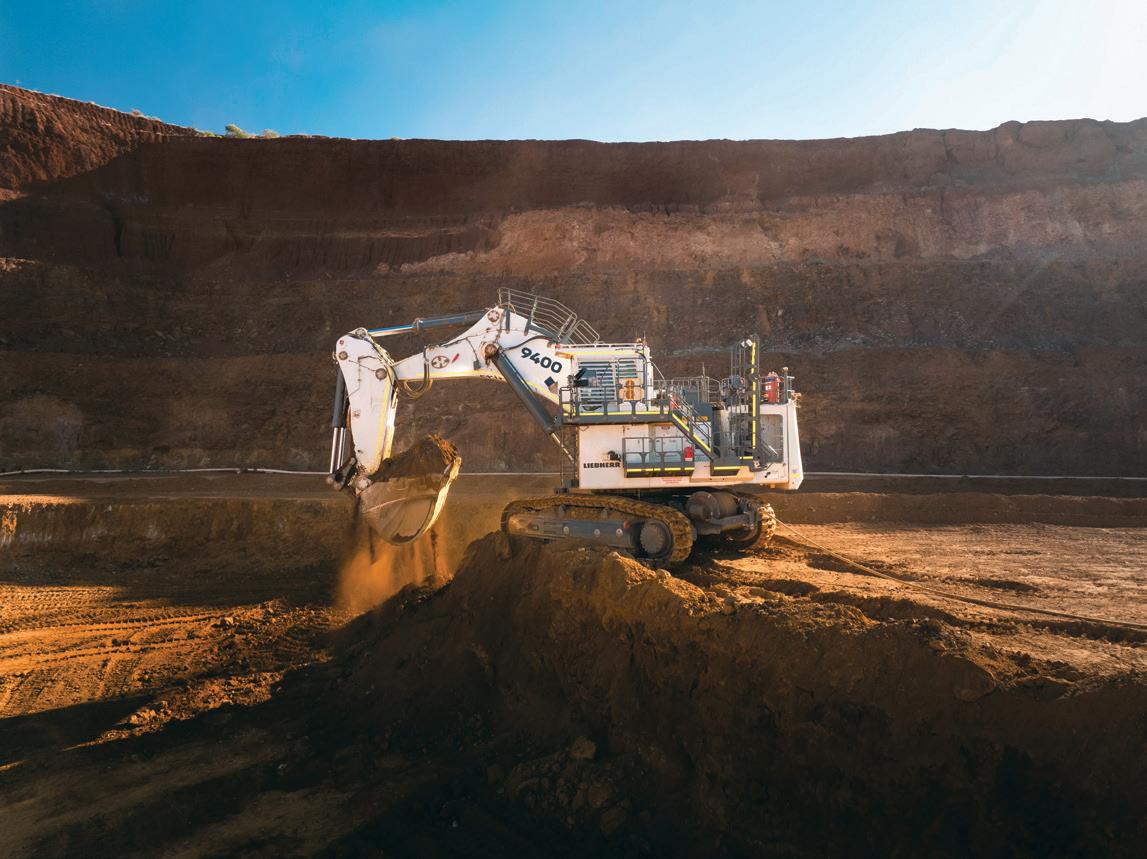 Liebherr offers a repower program for existing diesel-powered mining excavators. The first successful repower machine, a diesel-drive Liebherr R 9400 converted to an electric-drive R 9400 E, was completed in 2023 and is at work in Australia. Because Liebherr takes a modular approach to building its larger mining equipment, repowering a diesel-drive excavator can be completed in a few weeks. Repowering can involve updating an existing diesel engine to a more fuel-efficient engine and/or fuel source, including electric power, providing an opportunity for mining operations to transition to zero-emission solutions while retaining their equipment. Liebherr says that repowering to electric can also offer faster loading cycle times and improved hydraulic pump component life. To convert the R 9400 to an R 9400 E, the diesel powerpack and fuel tank need to be removed and replaced with their electric counterparts. Water-cooling radiators, fans, exhaust, and air intake systems can all be removed. To accommodate the high-voltage interface, a new rotary connection needs to be installed. Liebherr recommends that repowers occur when a machine is due for a major service or component exchange.
