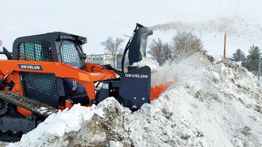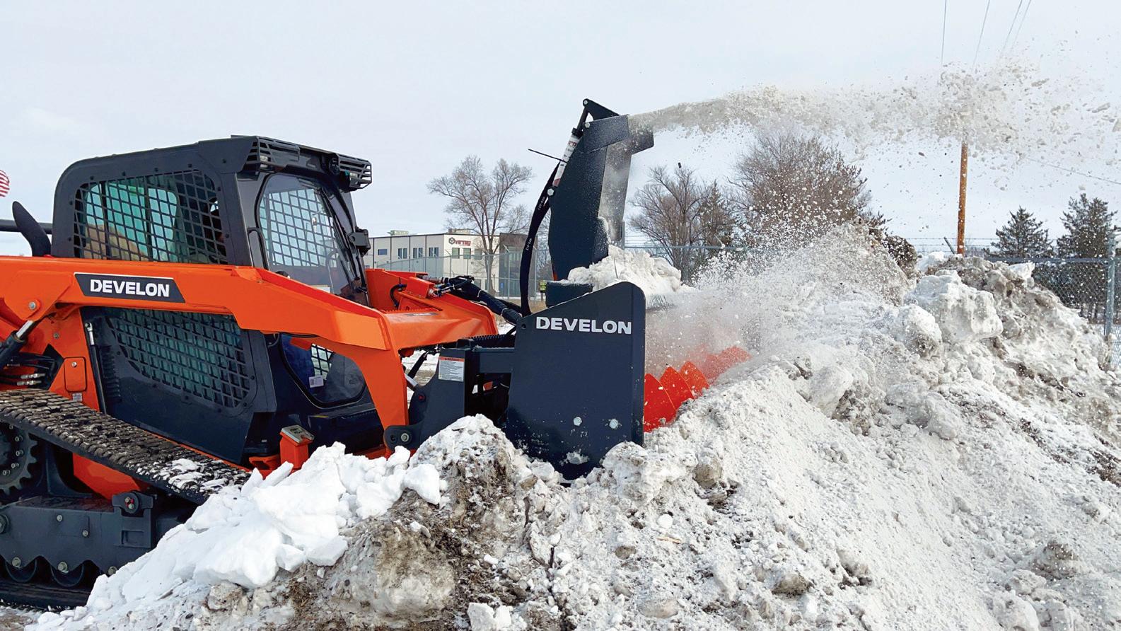 “Manufacturers like DEVELON offer a CTL snow pusher with a free-floating frame that allows the pusher to automatically adapt to uneven ground, reducing wear and ensuring a clean sweep,” says Jay Patel, attachment product manager at DEVELON.