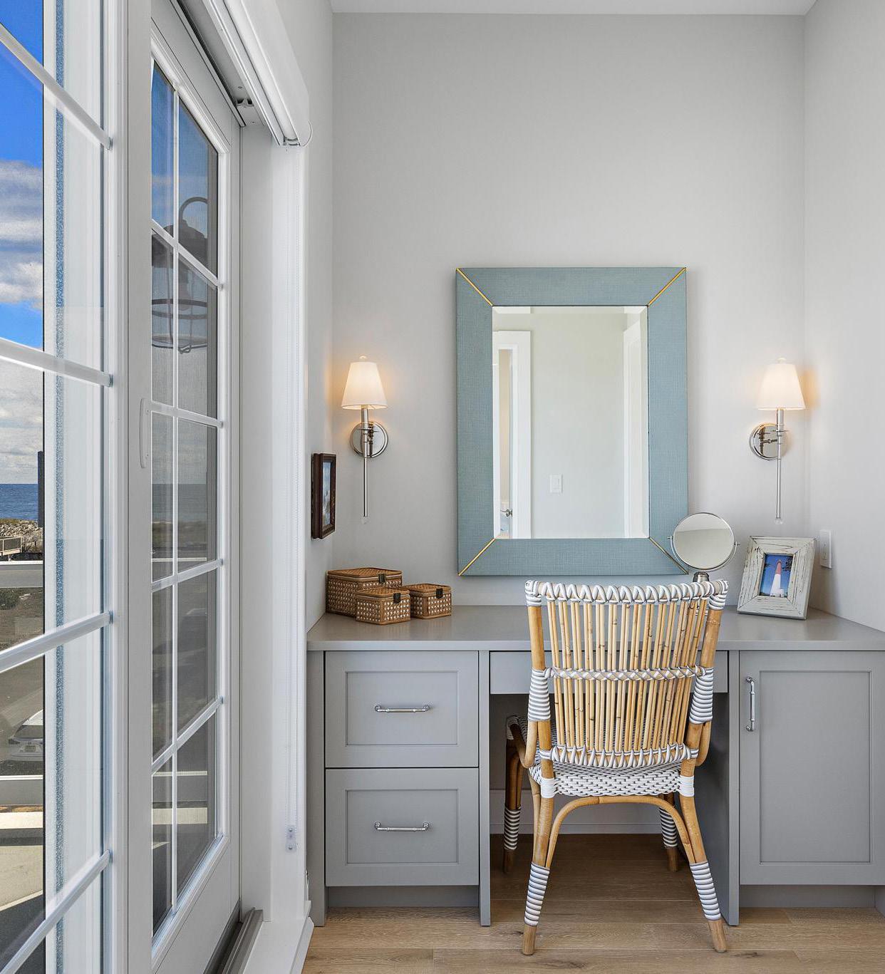 Lighten Up Textures and Fabrics: “Use linen slipcovers—they’re light, washable, and perfect for sandy feet and salt air. Add in coastal motifs like starfish or coral on pillows and quilts for subtle beachy flair.”