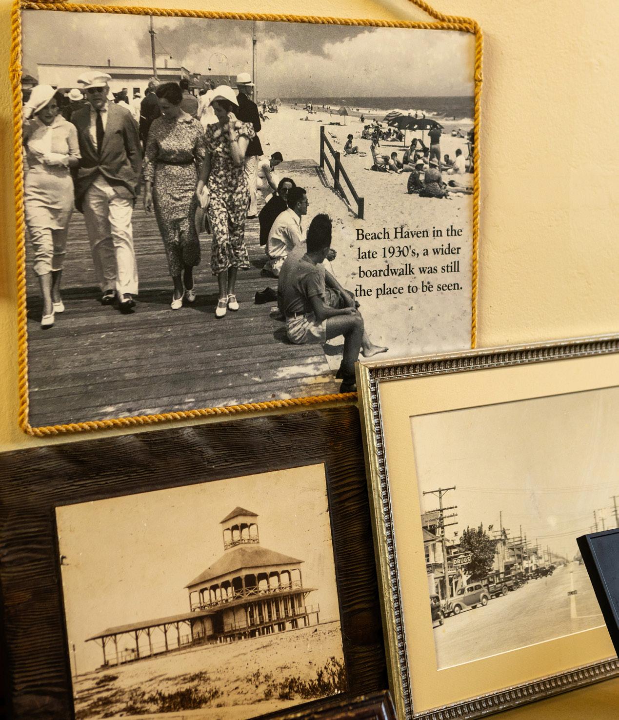 A small deck off his office offers a moment of calm, paying homage to LBI history with black-and-white photos, including a framed shot of the home that once stood on the prop-