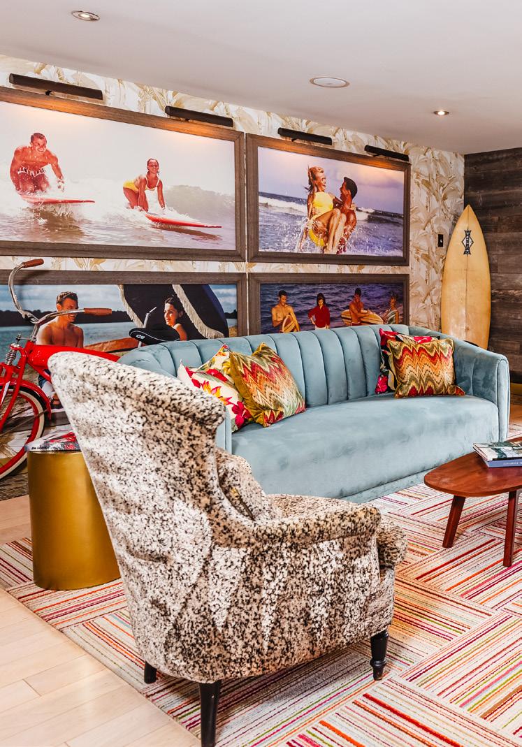 “When you live near the ocean, it’s part of your identity,” she says. “So bringing the sea indoors just feels right. That can mean artwork featuring surfers or mermaids, using colors like soft greens, blues, and sandy beiges, or integrating natural materials like rattan, driftwood,