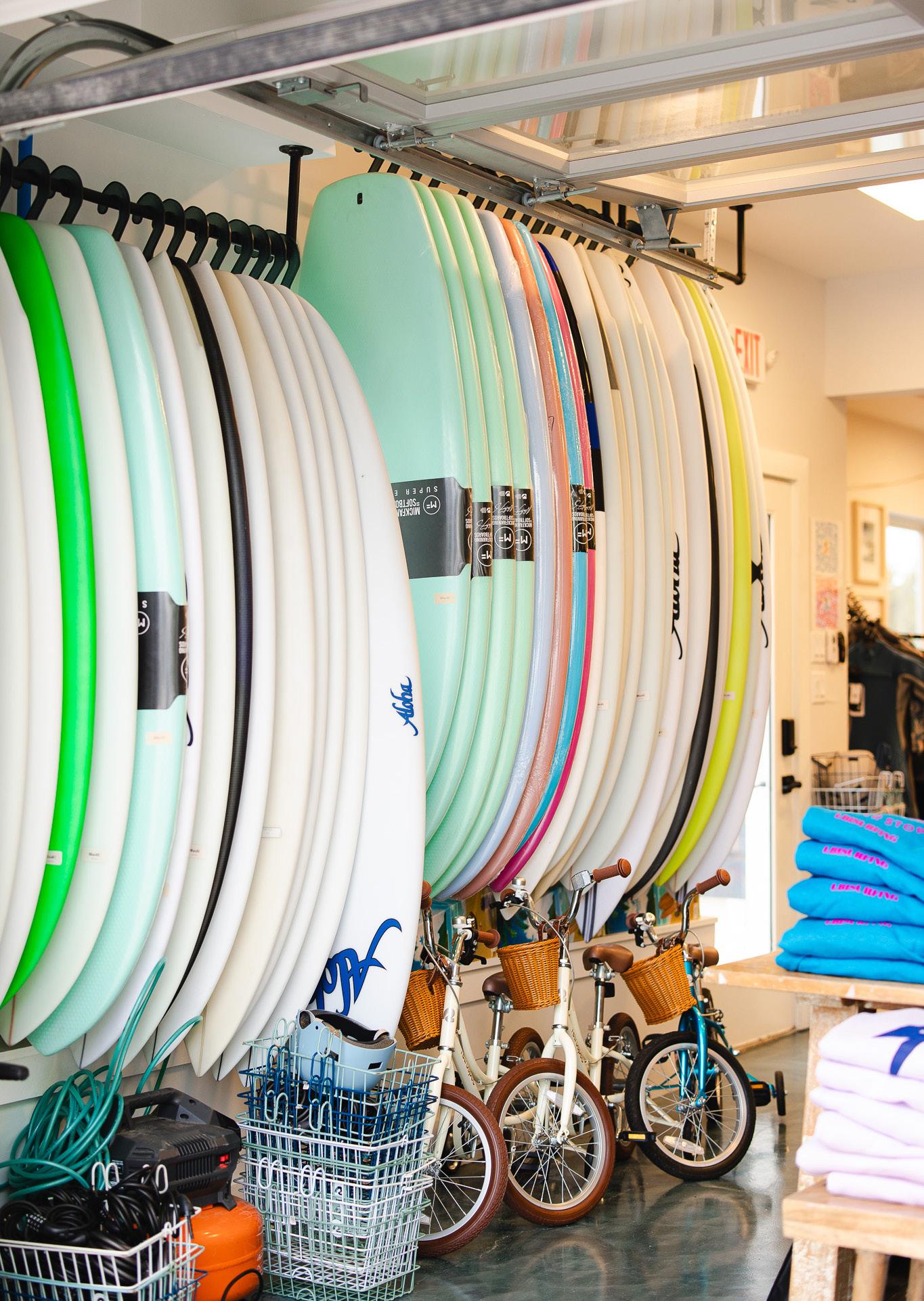 The Surf City location was designed not just as a shop but as a community space, hosting surf flick nights, meetups, and more. “It’s a haven for the surf community,” Jeff says. “A place where newbies and pros alike can share stoke.”
