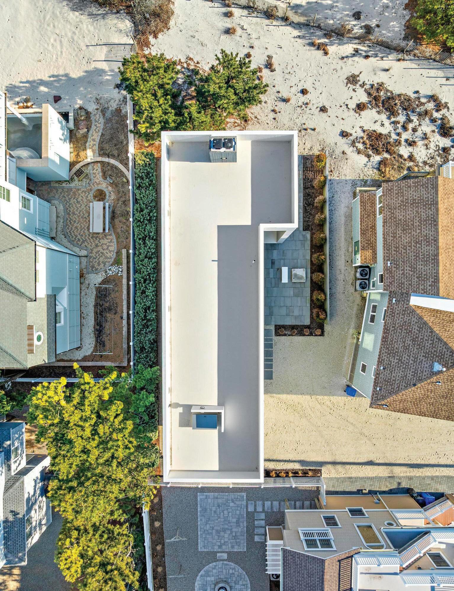 home, blending perfectly with the sand on the beach. Together, the exterior offers an exceptional look that makes the house feel as if it were built-in to the dunes. Painstakingly constructed, the original homeowners collaborated closely with award-winning architect Scott Specht, Founder and Principal Architect of Specht-Novak, renowned for high-end building around the country, to craft this exceptional gem.