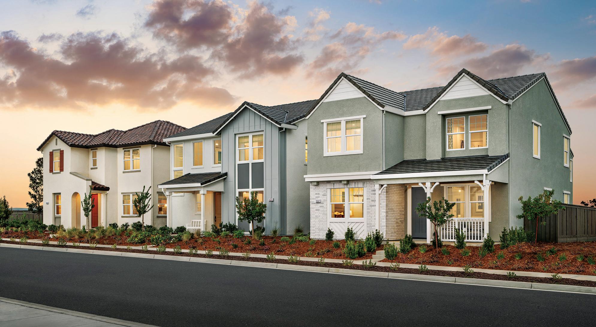 Closetotrails,lakes, andpopularshopping anddining,Regency at FolsomRanchin Folsom,CA,offersa varietyofduetandsinglefamilyhomedesigns across fivecollections. Homes rangefrom1,398 to2,441+sq. ft., with 2 to3bedrooms,2to3.5 baths,and2-to2.5-car garages. Prices range fromthelow-$500,000s to$1million.Residents enjoypremiumamenities,includingdog parks,outdoortrails, and TheResort,an 18,000-square-footclubhousefeaturingindoor