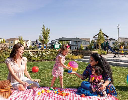 welcomingconnection totheVillageCenter. Western Parkfeatures pickleballcourts,open lawns,andfamilyfriendlyrecreation,and Duke’sDog Parkgives four-leggedfriends spacetorun and socializeoff-leash.Central Park,comingsoon,will featureabasketball court,multi-purpose field,playground,and more,perfectforpicnics, playdates,anddaily recreation.A planned TK–8schoolandAquatic Centerwillfurtherenrich thecommunity, bringing evenmoreopportunities tolearn,play, andenjoy lifeclosetohome.