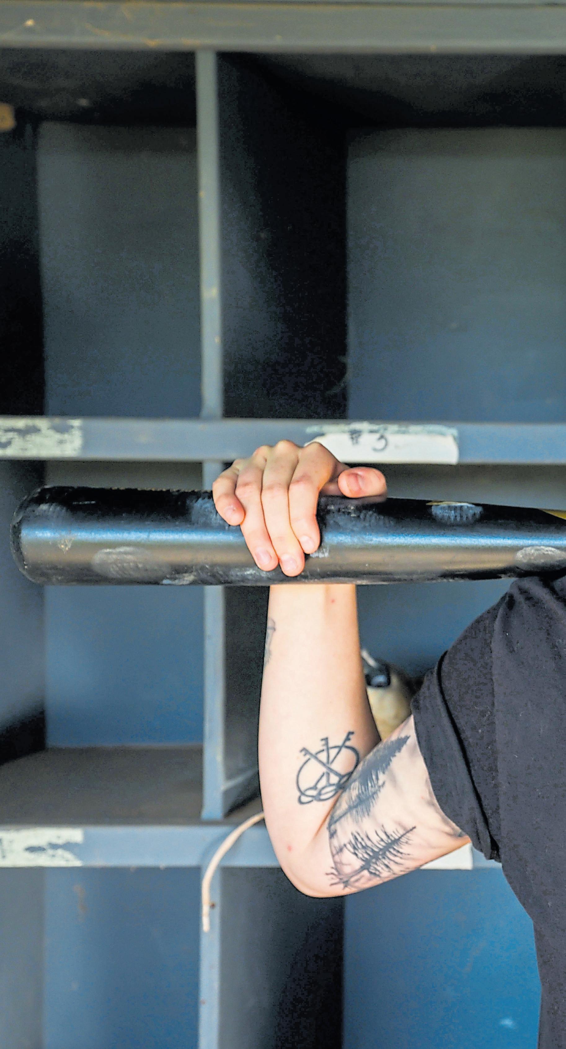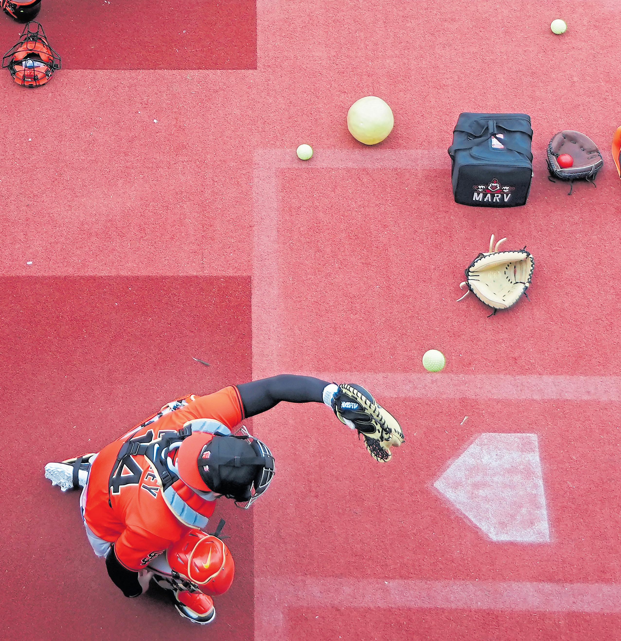 Opposite: San Francisco Giants catcher Patrick Bailey works out during spring training baseball