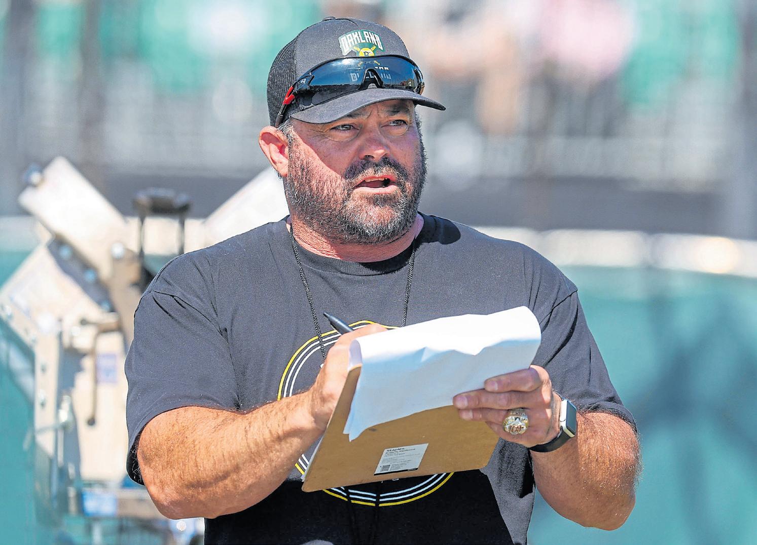 Manager Tony Vitello practices drills during spring training at Scottsdale Stadium.