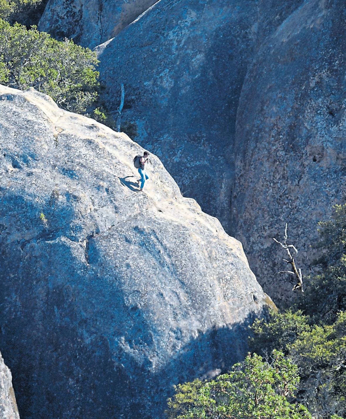 A hiker carefully navigates Mount Diablo’s Boy Scout Rocks. Mount Diablo State Park encompasses some 20,000 acres of land, including the mountain itself, whose summit reaches 3,849 feet.