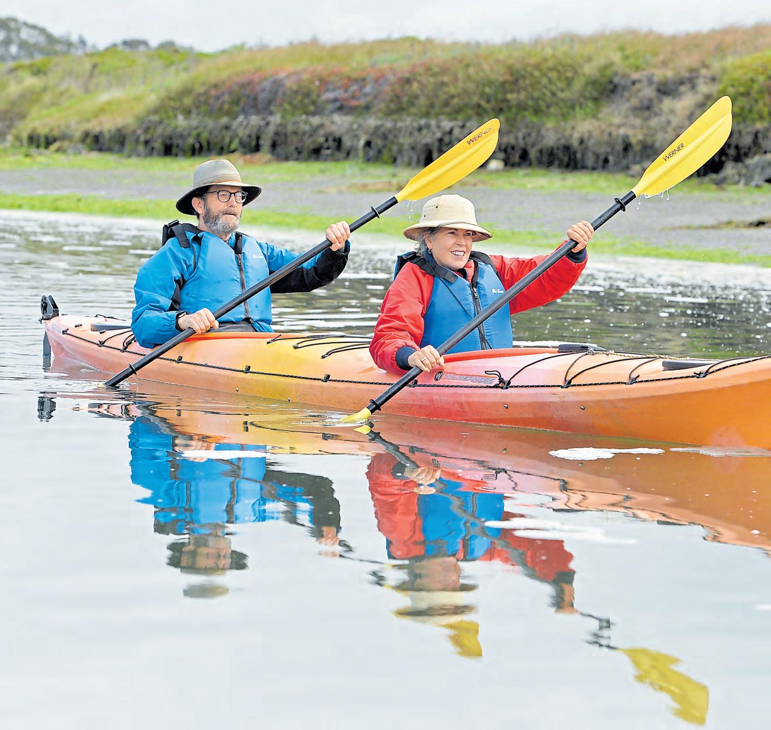 Previous page: Tom Bentley and Alice Bourget’s paddle through Elkhorn Slough, the 7-mile-long tidal salt marsh, offered views of otters, sea lions, pelicans and other wildlife.