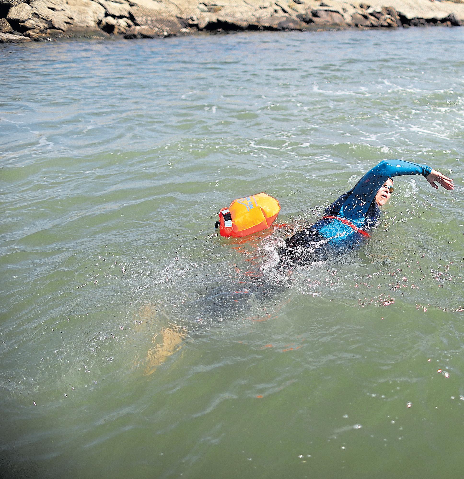 Right: Julia Sulek's two children, Daniel on the left and Claire on the right, jump into Trout Lake with friends around 2006.