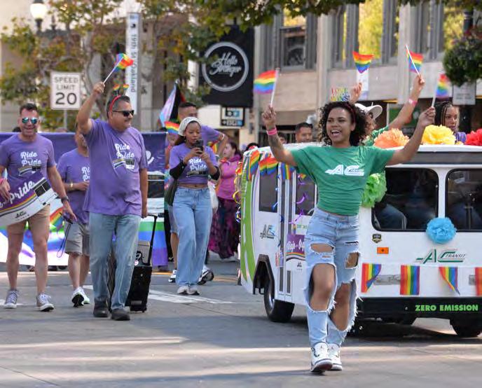 Oakland Pride celebrated its 15th anniversary September 7, and AC Transit workers and supporters were enthusiastic as they marched in the Pride parade, which had the theme “In Unity, We Thrive.” This year, the festival was held in Frank Ogawa Plaza