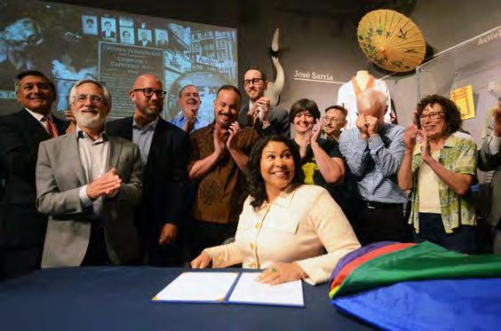 landmarking the late Gilbert Baker’s rainbow flag installation at Harvey Milk Plaza in the Castro during
