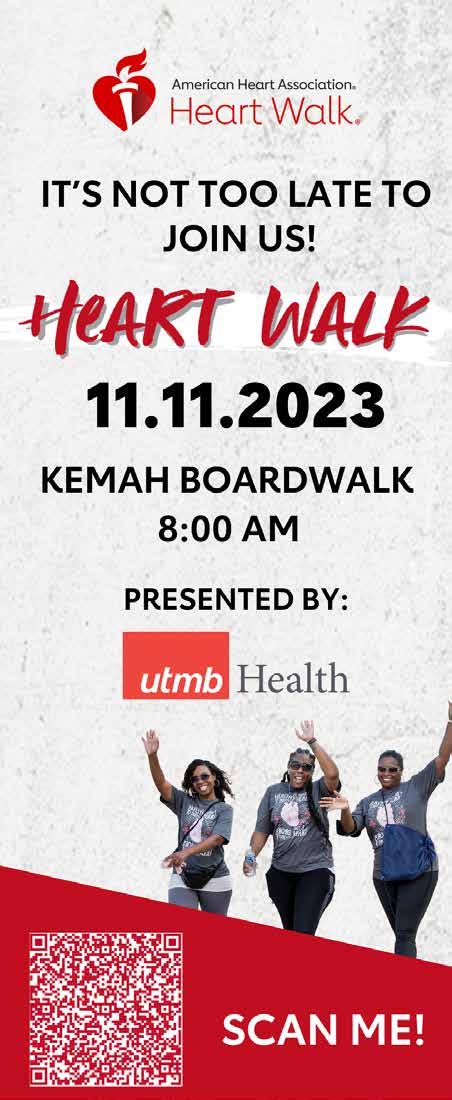 THE AMERICAN HEART ASSOCIATION HEART WALK, presented by UTMB Health, will be held Saturday, Nov. 11, starting at 8 a.m. on the Kemah Boardwalk.