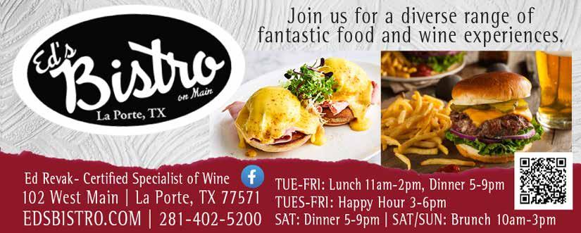 Find Ed's Bistro at 102 Main St., La Porte, and stay updated on their offerings through their Facebook and Instagram pages (@ edsbistrolaporte). For reservations, call 281-4025200.