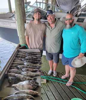 This year's sheepshead catches in the bay have only been fair. This is a little disappointing to see as they make for some fine eating. I really can't say why the numbers have been down. You can still catch a few of them along rocks and old pier pilings. The best way to do this is by using a small live shrimp rigged on a number 8 size treble hook and fished under a popping cork.