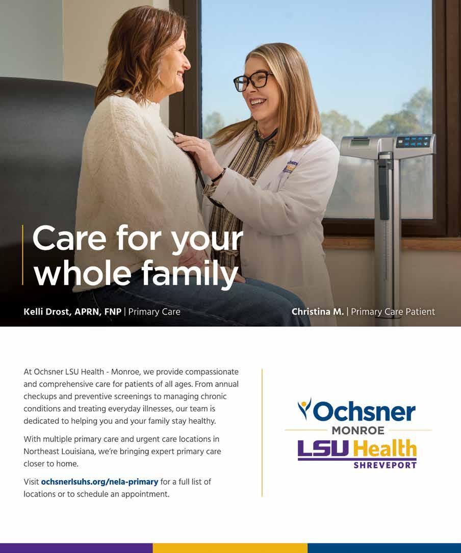 This month, we turn our focus to the revitalization of Lake Providence, a place where history and hope are meeting in meaningful ways. In Vanelis Rivera’s feature (page 58), you’ll meet the passionate individuals helping to reimagine the town’s future, including Cassie Condrey of Doorway to Louisiana. What’s happening in Lake Providence isn’t just preservation… it’s a reawakening. From thoughtfully curated boutiques and a growing arts presence to a new coffee shop brewing locally roasted beans, the town is quietly but confidently becoming one of Louisiana’s most compelling rural destinations.