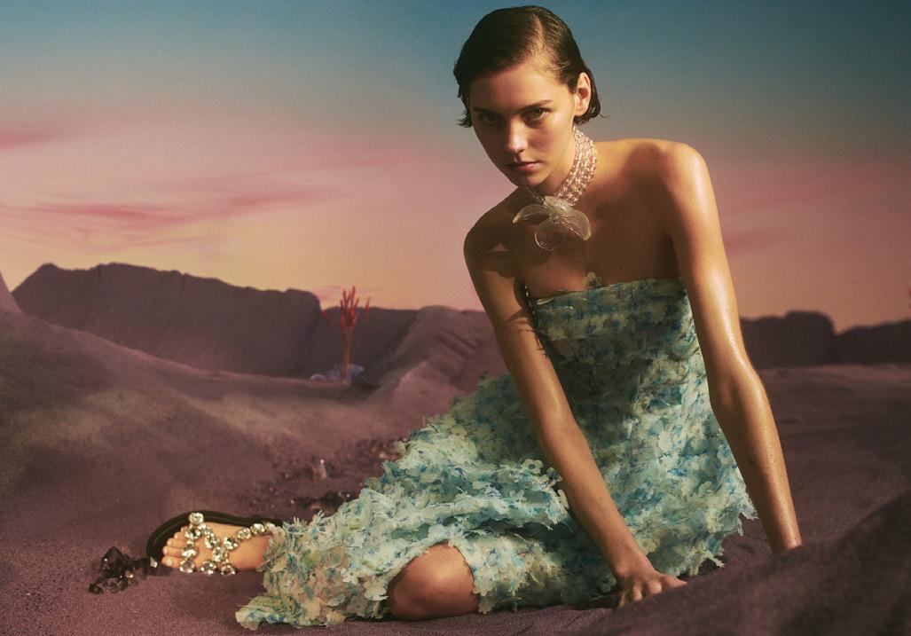 As summer party season approaches, let feminine silhouettes, joyful print and a sunny disposition take the lead with H&M Studio’s Resort capsule collection. Inspired by dreamy Italian palazzos, swirling Venetian glass and magical shell-encrusted grottoes, the collection channels a holiday state of mind. In a sunset palette of tangerine, honeyyellow and flashes of pistachio, with richly textured embroidery and eye-catching prints, golden-hour gowns are set against easy beach styles and jet-set swimwear.